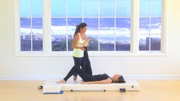 In this Mat workout, Monica shows how she progresses Kacie from their previous Mat Workout. She reviews a little, but she keeps it moving forward by adding more flow and more exercises like Saw, Seal, and others. Monica also works on building awareness so you can still find a challenge while keeping yourself safe.