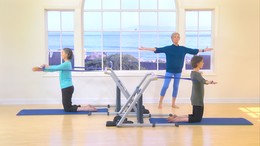 Suzanne Gutterson teaches a creative Mat workout using a Theraband to simulate a Reformer (or other equipment) workout, which is great for those who don't own a Reformer but want to create the same sensations in their body. You do not need the portable bars shown in the video, but simply need something sturdy around the house that you can slide a Theraband around. Enjoy movements to open up the upper back, oblique and abdominal work, and challenge through exercises such as a Jackknife into Short Spine.